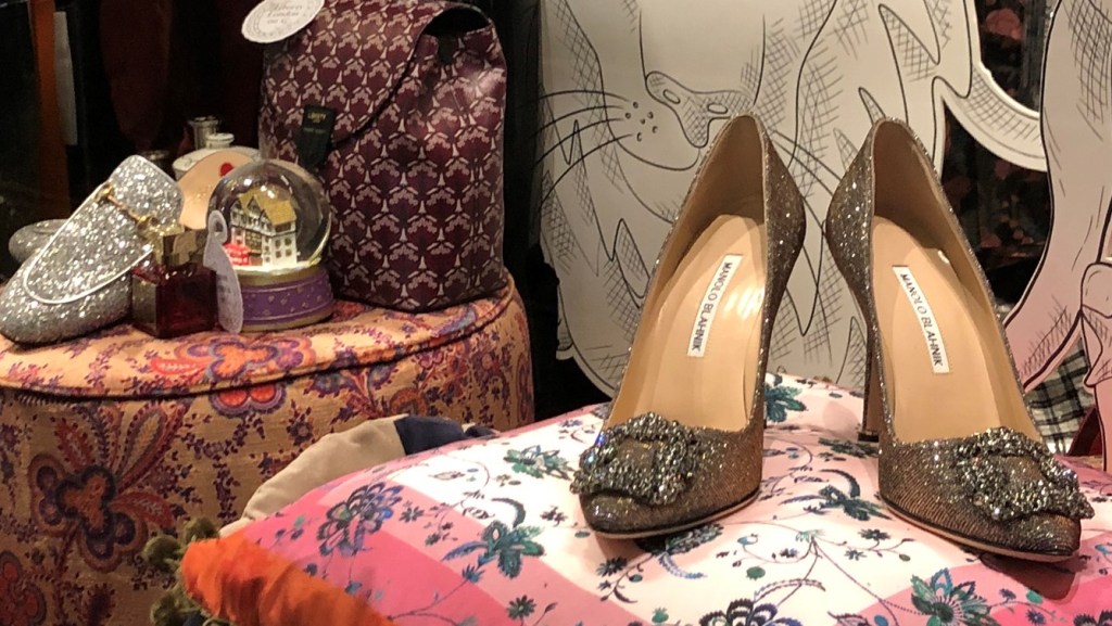 I will see me. And so will Bertie. And maybe I do have the perfect occasion in which to wear pink sequined shorts. Perhaps teamed with the forest green metallic knee-high boots I spot next to the snakeskin ones. I will feel invincible.