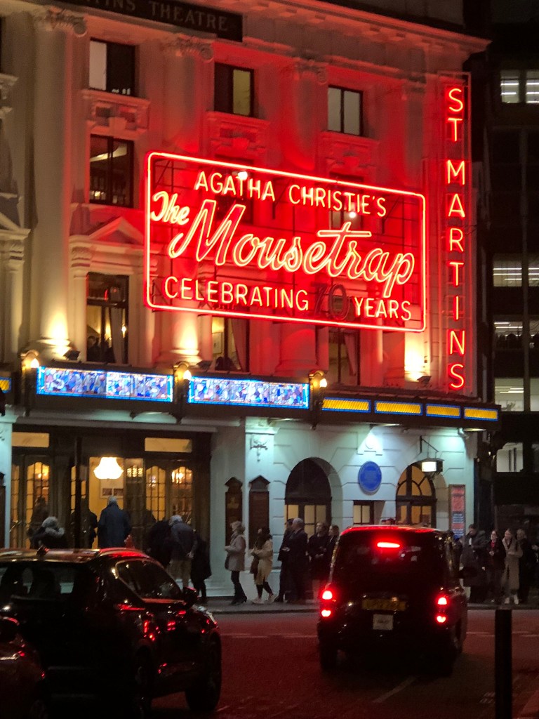 On the original trip, we went to see Oliver! at the cinema and I developed a feverish crush on Jack Wild that lasted until David Cassidy appeared in my life a couple of years later. We also saw a Brian Rix Whitehall farce which had a naked man covering his bits with a bobby’s helmet, though I can’t remember why. Neither options were available to us over 50 years later, so we substituted our evening’s entertainment with the Mousetrap; that having been a possible alternative on the original trip.